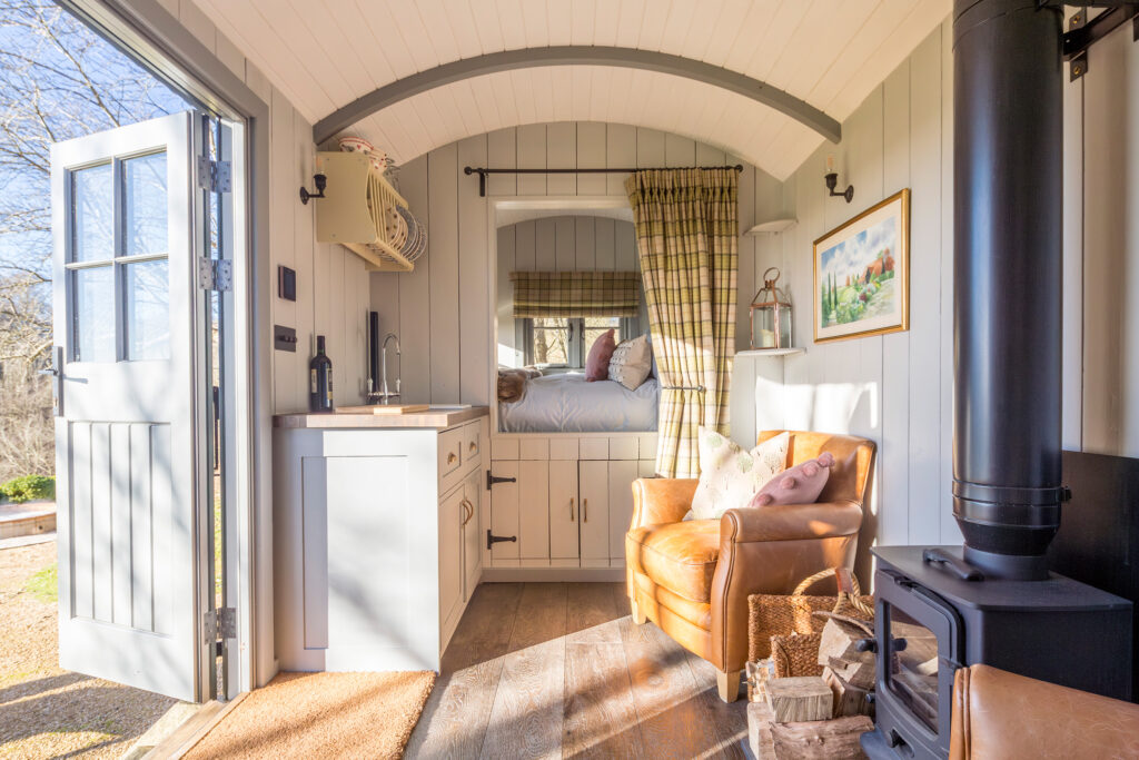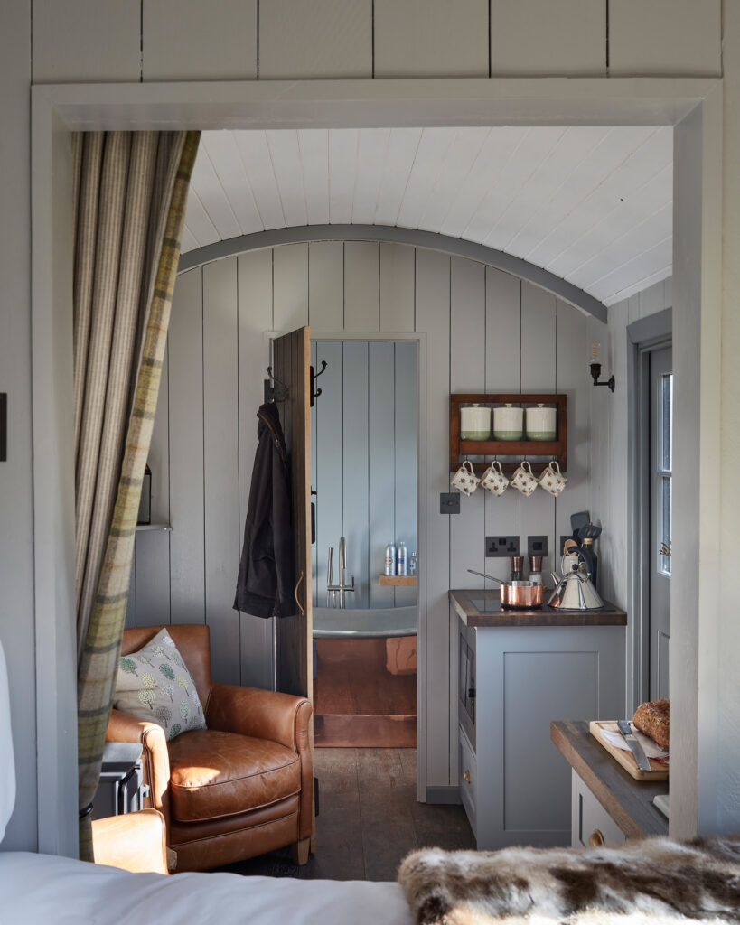 Comprising: double bed; kitchenette with dual hob and microwave; two leather chairs either side of a wood burner; bathroom with rolltop bath and shower; underfloor heating throughout; exterior relaxing area with outdoor burner and amazing views.
